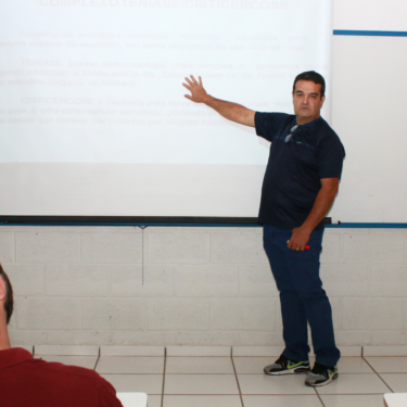 O evento ocorreu na Fazenda Laboratório, no dia 10 de abril, e contou com duas palestras: o Prof. Dr. Dênio Garcia Silva de Oliveira falou sobre o tema “Cisticercose Bovina” e o Prof. Dr. Leonardo Borges Acúrcio falou sobre o tema “Mastite Bovina”. Estavam presentes alunos do curso, produtores rurais e agentes da inspeção sanitária.