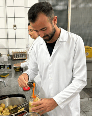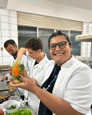 A aula prática proporcionou um ambiente de aprendizado dinâmico e colaborativo, no qual os participantes puderam colocar a “mão na massa” e experimentar o processo completo de produção de conservas, desde a seleção das matérias-primas até o envase final.