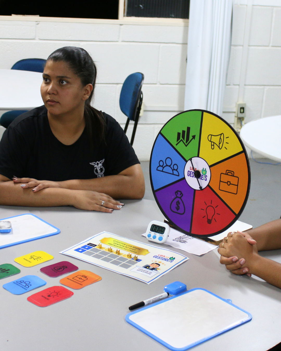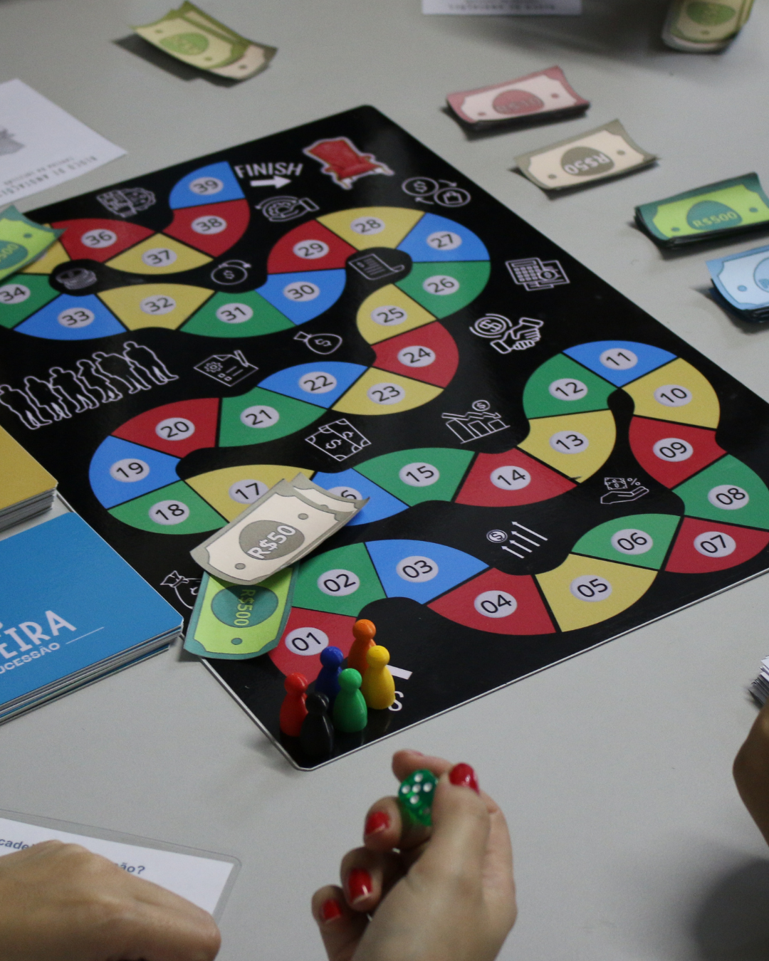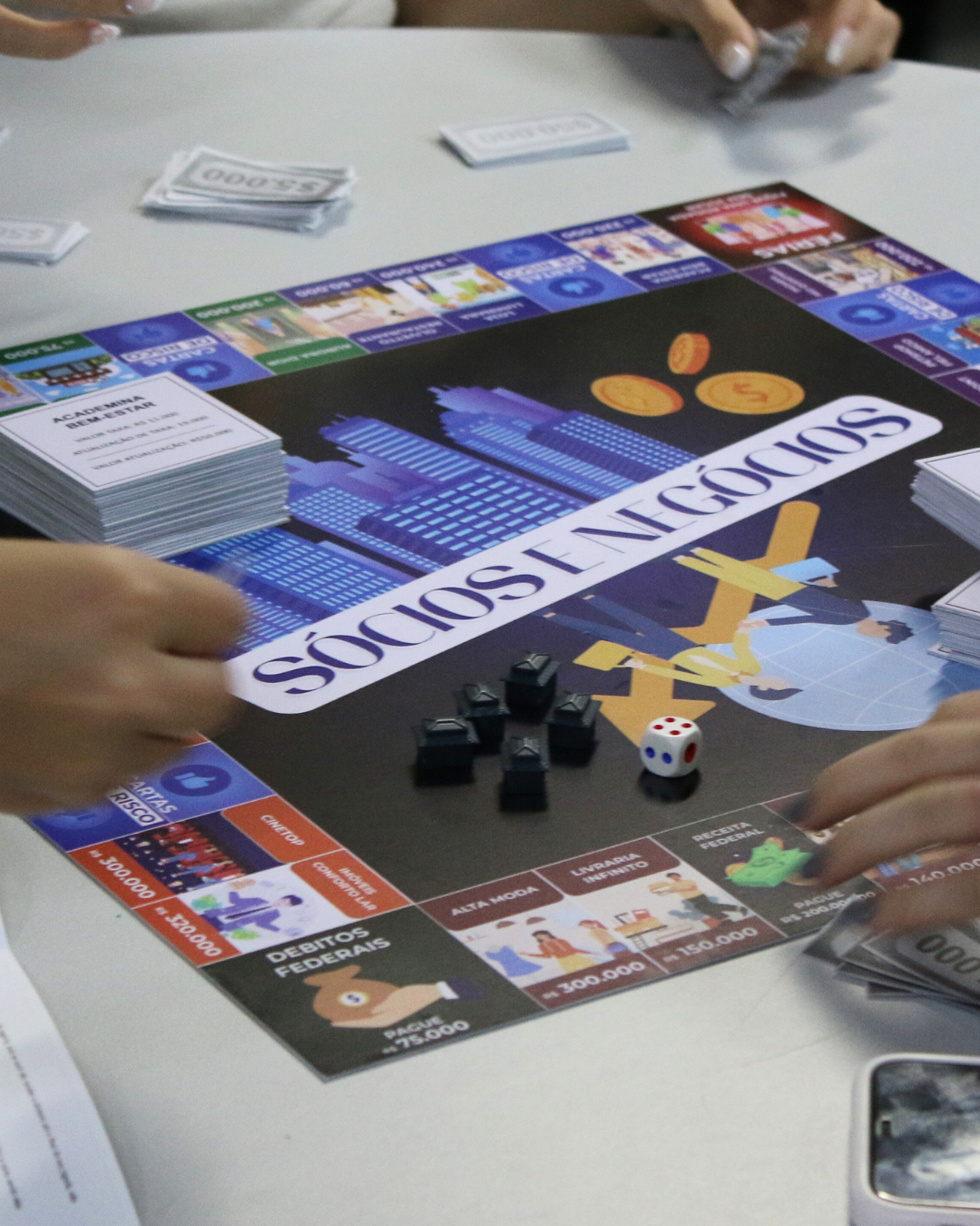 Já Nara Ribeiro falou sobre o “Sócios e Negócios”, uma dinâmica que simula operações da bolsa de valores. “Ele fala um pouco sobre aquisição de empresas e, ao longo do jogo, tem taxas, você pode investir numa empresa para aumentar o lucro dela. Tem também as cartas de risco, que contém perguntas do dia a dia dos empresários, para entender e aprender como funciona a rotina de um negócio, com seus riscos e ganhos”, explicou.