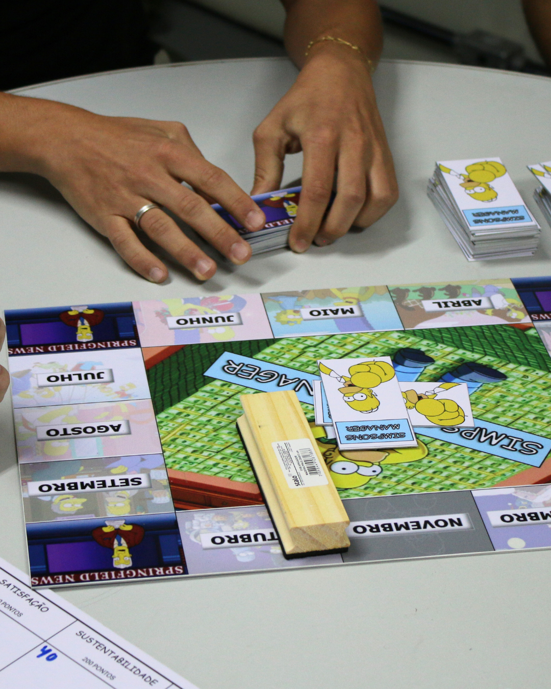 O aluno Jefferson Breno apresentou o “Simpsons Manager”, um jogo cooperativo voltado para todas as idades: “Ele tem o intuito de trazer estratégias não apenas do patrimônio líquido, mas também da sustentabilidade e satisfação do cliente. É para vivenciar o ambiente de uma empresa, mas com diversão”, destacou.