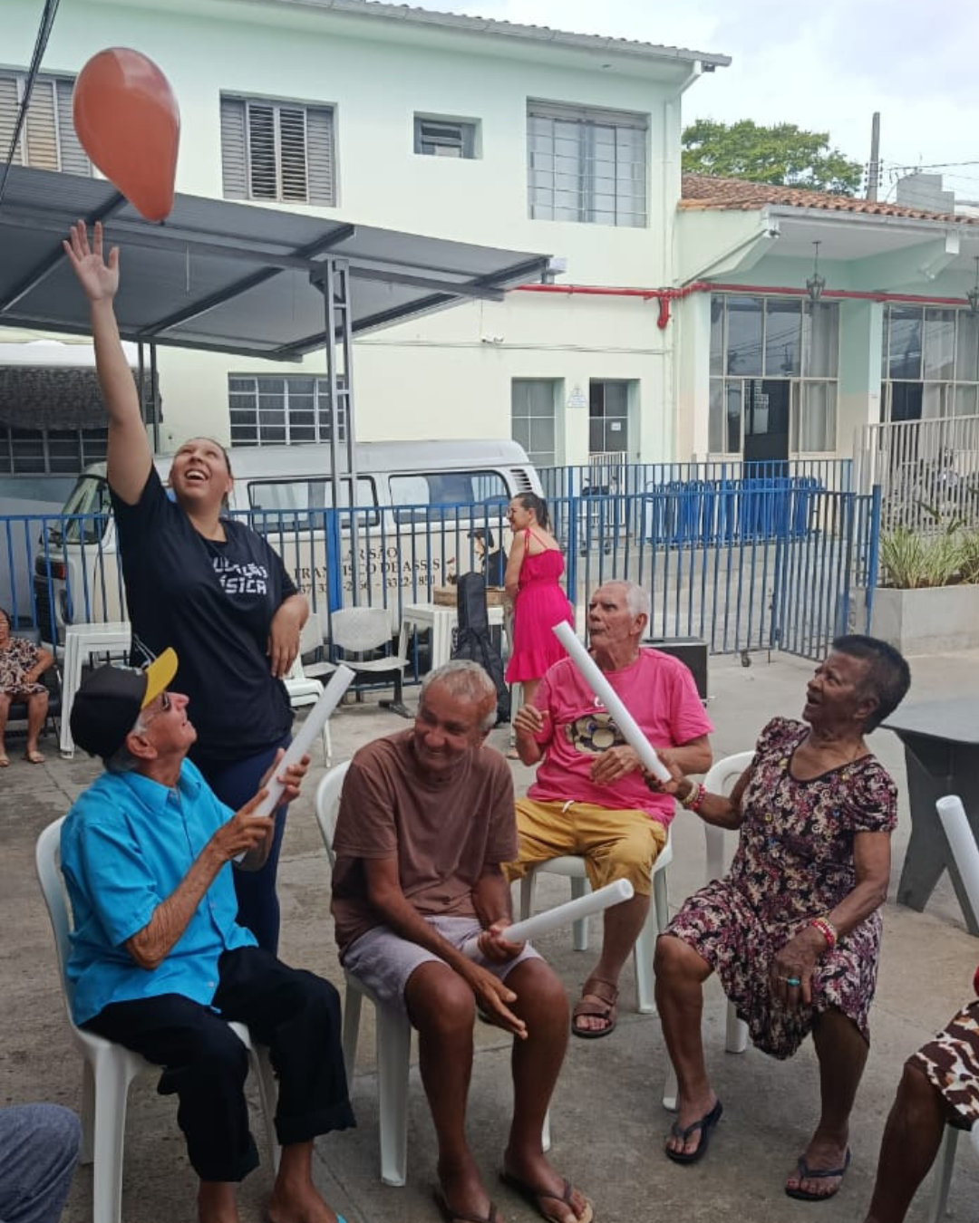 Cerca de 40 idosos assistidos pela instituição foram beneficiados com uma tarde repleta de brincadeiras, jogos e atividades lúdicas, cuidadosamente pensadas para promover lazer, socialização e bem-estar emocional. A proposta teve como foco estimular a interação, o cuidado afetivo e o fortalecimento dos vínculos sociais por meio do movimento e da recreação.
