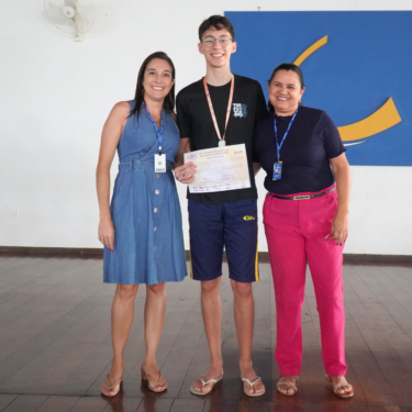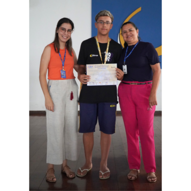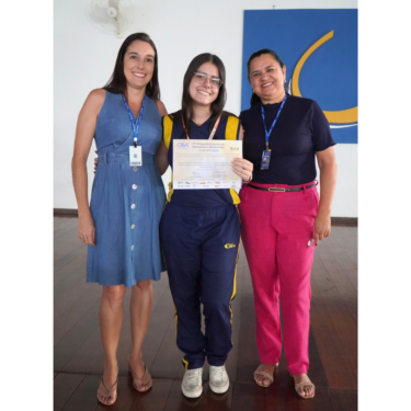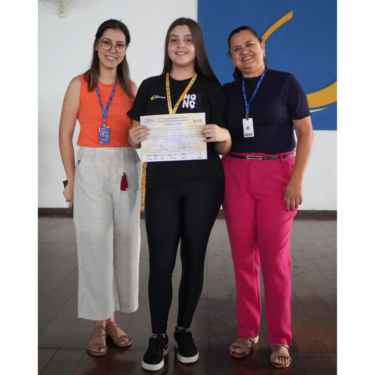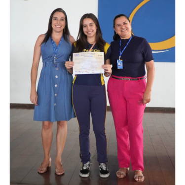 A entrega das medalhas ocorreu no período do recreio e contou com a participação da Diretora Prof. Ma. Neiva Maria Rodrigues Silva, da coordenadora do Ensino Fundamental II, Profa. Lana Sheren Terra Duque de Andrade, e a coordenadora do Ensino Médio, Profa. Lisiane Furtado Fonseca.