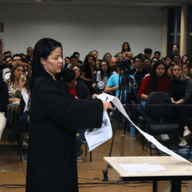 No dia 28 de maio, foi realizado um julgamento simulado no Plenário do Tribunal do Júri, proporcionando aos estudantes uma experiência prática e imersiva da rotina do sistema judiciário. A atividade seguiu todas as formalidades legais, desde a formação do Conselho de Sentença até a leitura da sentença pelo Juiz-Presidente, oferecendo aos participantes uma vivência completa do procedimento penal.