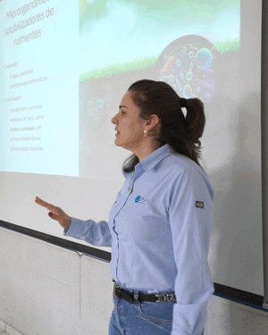 A representante da Ical, Ma. Gabriela França, demonstrou formas de utilizar produtos sustentáveis para manter um solo saudável: “A gente trabalha com corretivos de solo e vamos apresentar para os produtores a importância desta correção do solo, para desenvolver a microbiota do solo, que é o principal foco do dia de hoje”, afirmou ela.