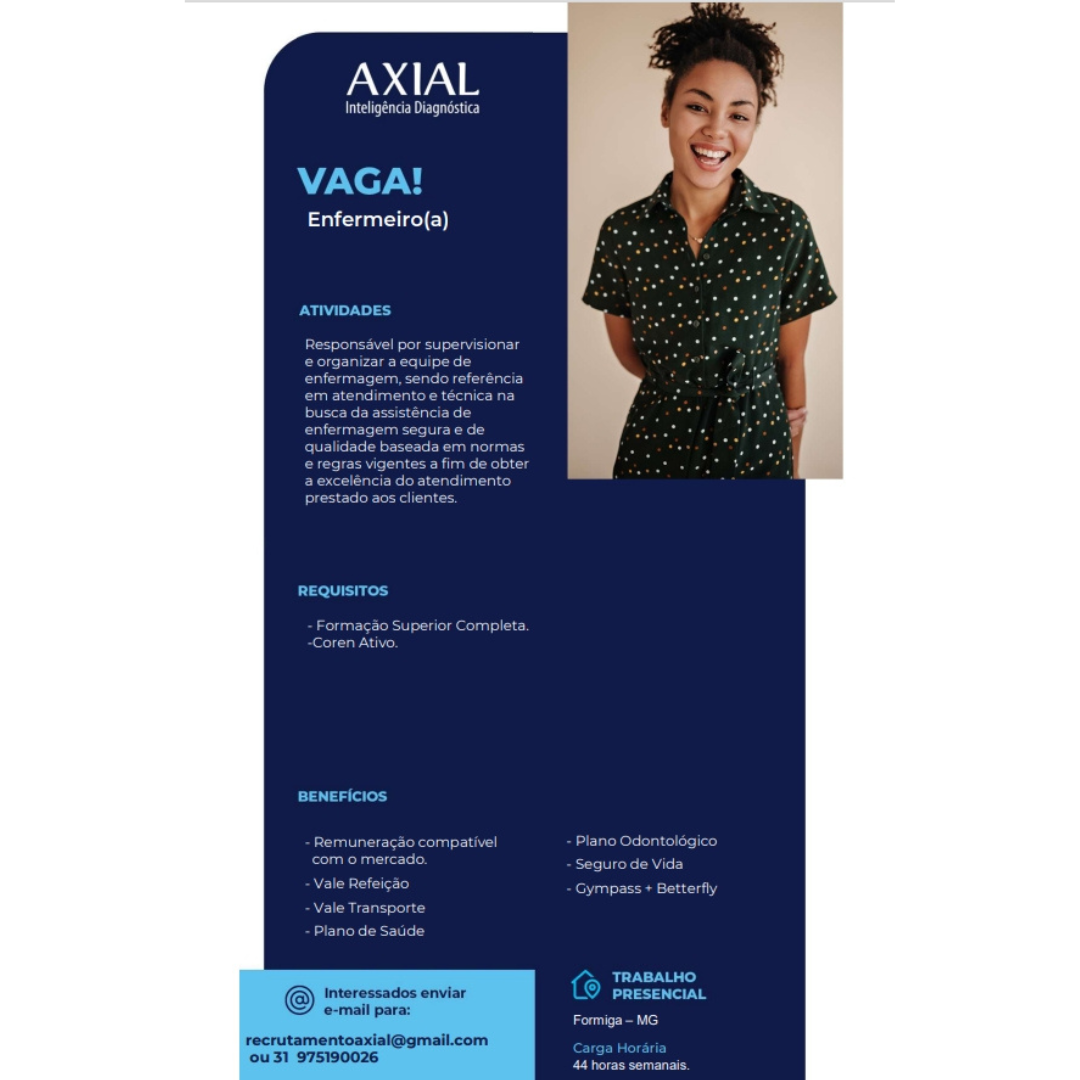 sexta-feira, 20 de dezembro de 2024.A empresa Axial Inteligência Diagnóstica está com vaga aberta para enfermeiro na cidade de Formiga.