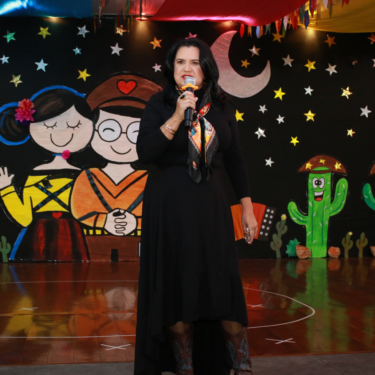 Ela também falou sobre a transição do ambiente da festa para a Praça de Alimentação do Prédio 1 do UNIFOR-MG: “Para as apresentações a gente tem dado um foco maior nos nossos alunos, onde eles são as estrelas da festa. Por isso nós escolhemos esse local aqui, para que os pais possam ver e prestigiar os seus filhos com mais tranquilidade, assim como assistir às apresentações com mais conforto”.