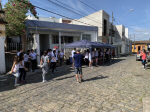 O UNIFOR-MG disponibilizou tendas, mesas e cadeiras para o evento. Supervisionadas pela Profa. Ma. Luciane Alves Gianasi, alunas do curso de Educação Física ofereceram técnicas de alongamento e orientações durante a caminhada. O ponto de chegada foi na sede da Ordem, onde foram oferecidas frutas aos participantes.