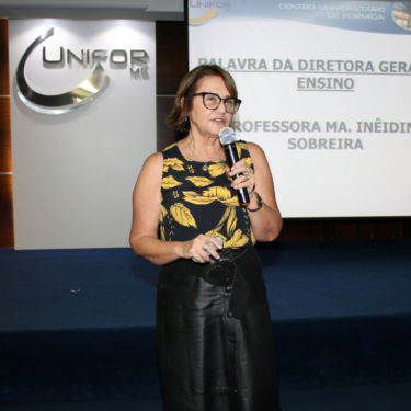 Em seguida, a Diretora Geral de Ensino, Profa. Ma. Ineidina Sobreira, tomou a frente para passar aos alunos as orientações básicas para ter o melhor aproveitamento dos cursos ao longo da jornada na instituição. Ela explicou sobre como funcionam os Cursos de Nivelamento, a monitoria e os estágios, e apresentou os benefícios disponíveis para os alunos como atendimento psicológico, atendimento especializado, seguro escolar e acesso ao Clube Unifor.