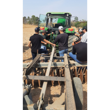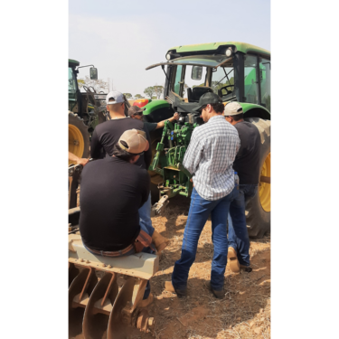 Além disso, os engenheiros agrônomos Daniel Aparecido e Herycles Araújo, que é aluno egresso do curso de Agronomia da UNIFOR-MG, falaram sobre o funcionamento da plantadora e a importância de uma regulagem bem feita para uma boa produtividade.