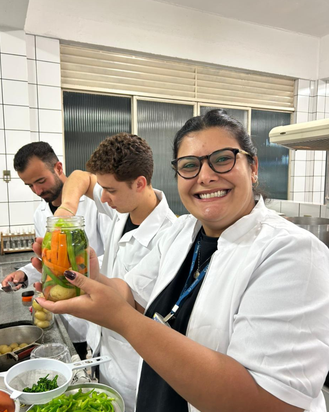 De acordo com a Profa. Dra. Julia Marques Oliveira, responsável pela orientação da atividade, o momento foi de grande importância para o desenvolvimento técnico e pessoal dos alunos. “Nesta disciplina a gente vê formas de conservar o alimento após ele sair do campo, hoje estamos usando o sal. Estamos juntando duas técnicas, tanto o branqueamento quanto a salmoura, que é o preparo da conservação usando o sal”, destacou.