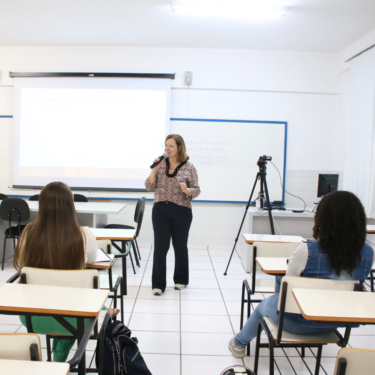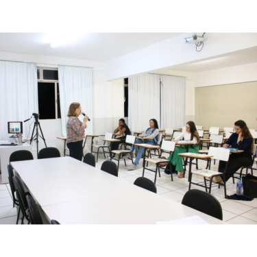 Os alunos do 2º período do curso de Pedagogia na modalidade EAD, do UNIFOR-MG, participaram de aulas presenciais no campus. Os conteúdos foram ministrados pela coordenadora do curso, Profa. Ma. Elizabeth Rocha de Carvalho Oliveira em sala de aula do Prédio 6.