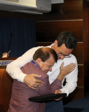 Durante a assembleia, o professor Marco anunciou que se afastará do cargo de reitor a partir de maio de 2026, permanecendo como membro do Conselho Deliberativo. Na ocasião, foi homenageado por colaboradores da FUOM e por seus familiares, em um momento marcado por emoção e reconhecimento, que sensibilizou os presentes.