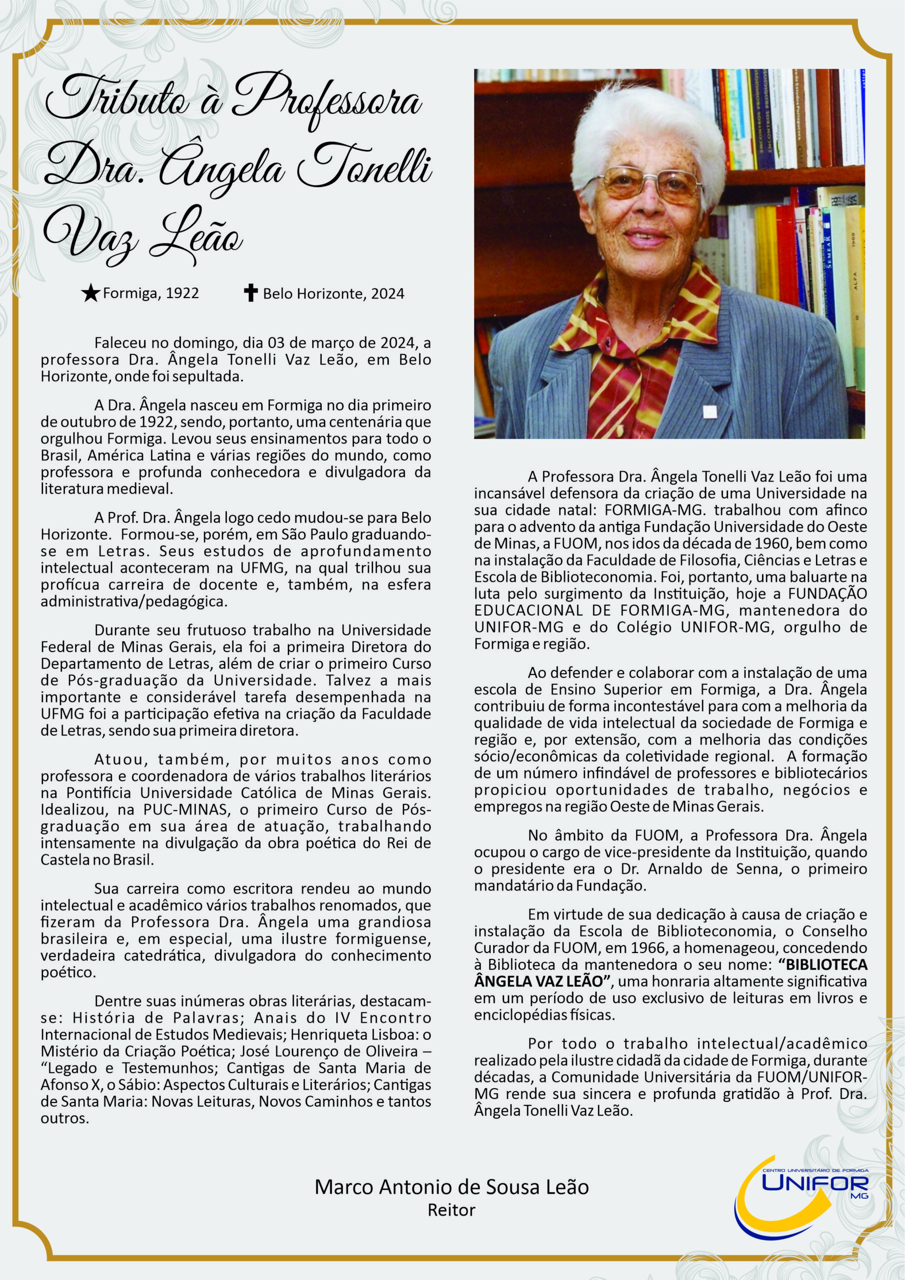 TRIBUTO À PROF.DRA. ÂNGELA TONELLI VAZ LEÃO